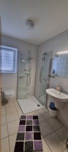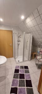 Das helle großzügige Bad umfasst ein WC, eine Dusche, sowie ein Waschbecken. Es wird selbstverständlich mit einer Fußbodenheizung beheizt.